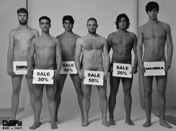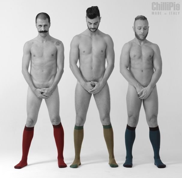 ¿Conoces la marca de calcetines italiana Chillipie? Pues seguro que no se te olvida su nombre a partir de ahora, porque para darse a conocer han decidido que lo mejor es que sus modelos no lleven ninguna otra prenda que distraiga la atención… claro que sus penes desnudos podrían hacerlo.