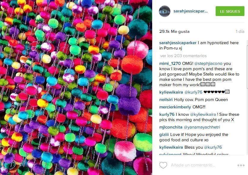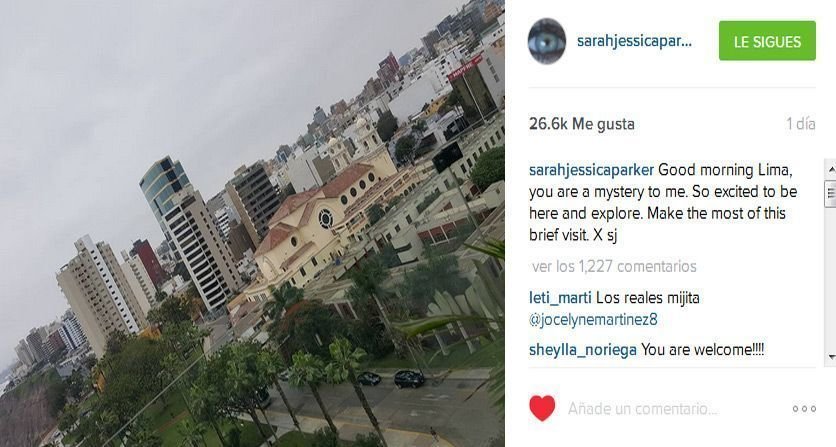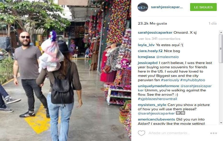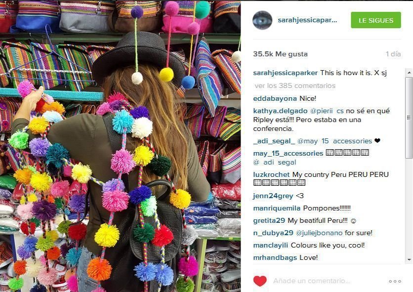 Sarah, desde su cuenta de Instagram ha estado publicando diferentes fotos sobre su visita a nuestra capital, donde podemos destacar su visita al Mercado Inca de Miraflores donde compró varios pompones y carteras artesanales.